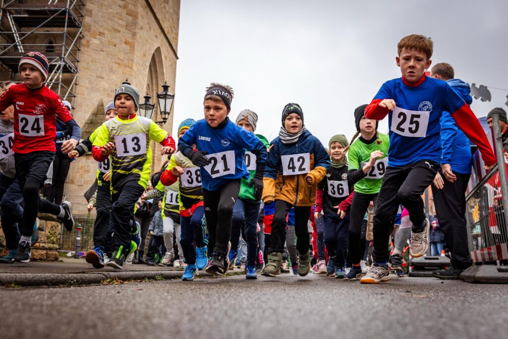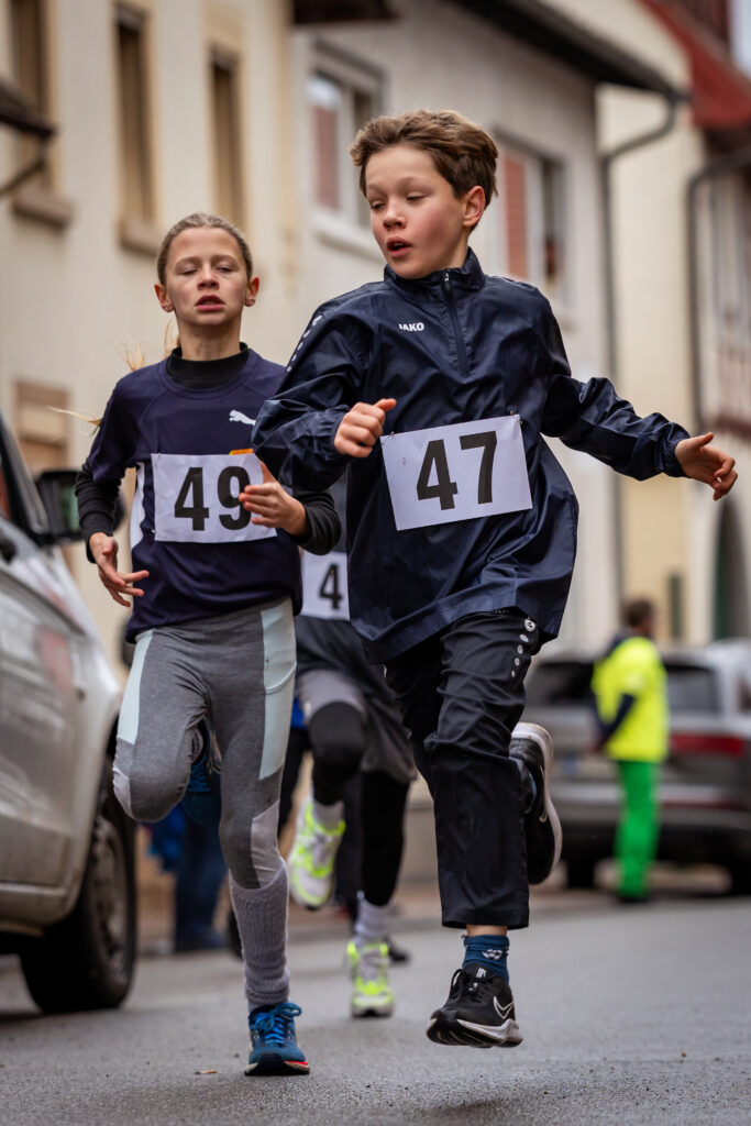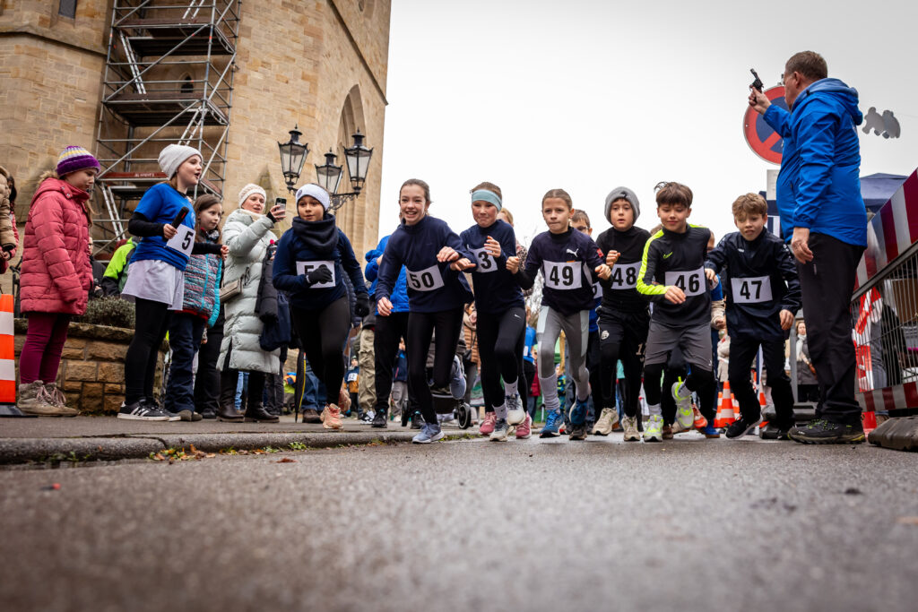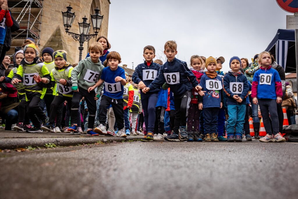 Trotz des trüben Wetters und leichtem Regen strömten 73 junge Läuferinnen und Läufer in die Ortsmitte, um an den Start zu gehen. Die Altersspanne reichte von den jüngsten Teilnehmern (M/WU6) mit gerade einmal vier Jahren bis hin zur Jugend und 16 Jahren. Es war eine Freude, so viele motivierte Gesichter am Start des Marktplatzes beim Rathaus zu sehen!