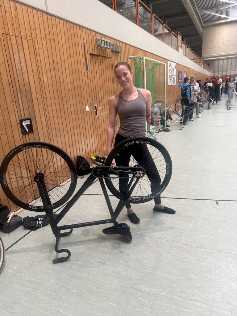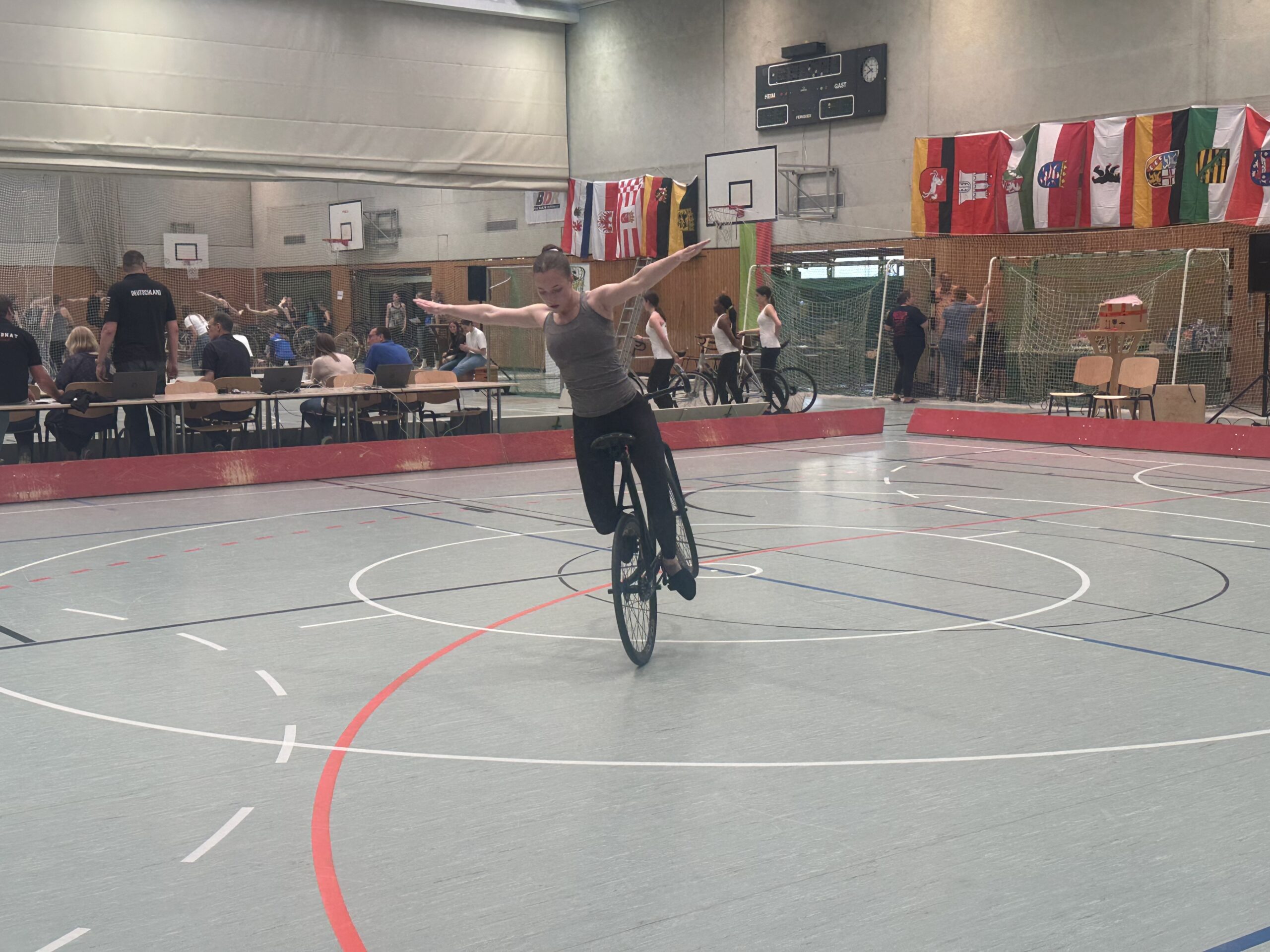 Am vergangenen Wochenende zeigte Anna, dass sie auch in dieser Saison zu den besten 1er Juniorinnen Deutschlands gehört. Trotz einer Verzögerung von 30 Minuten, chaotischen Verhältnissen beim Einfahren und einem Start direkt nach dem Radball behielt sie die Konzentration und präsentierte eine saubere Kür. Alle Übungen liefen rund und die Zuschauer hatten zu keinem Zeitpunkt das Gefühl, dass hier etwas schiefgehen könnte.